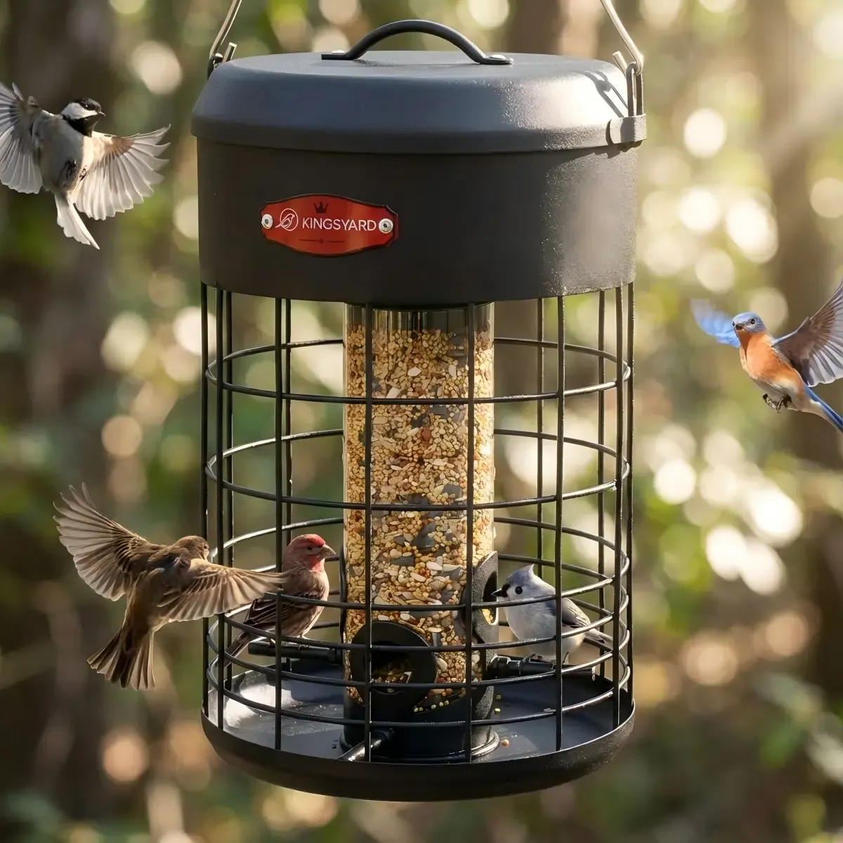 Black Kingsyard Caged Squirrel Proof Tube Feeder with Weatherproof Design 7