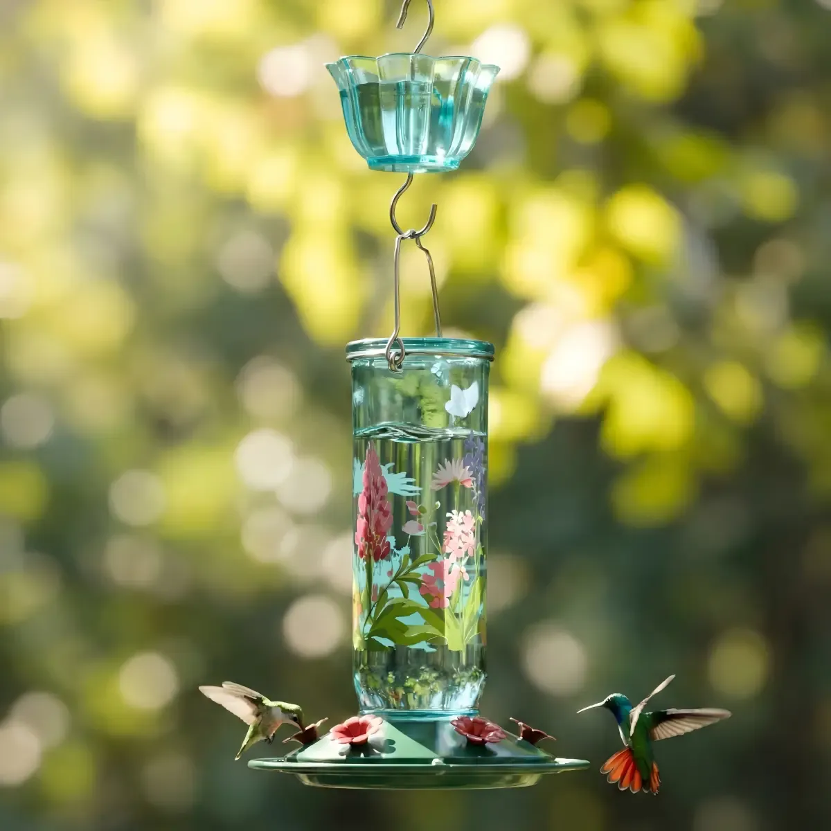 Kingsyard Round Glass Hummingbird Feeder with Flower Patterns